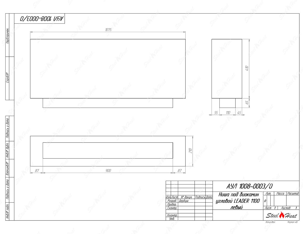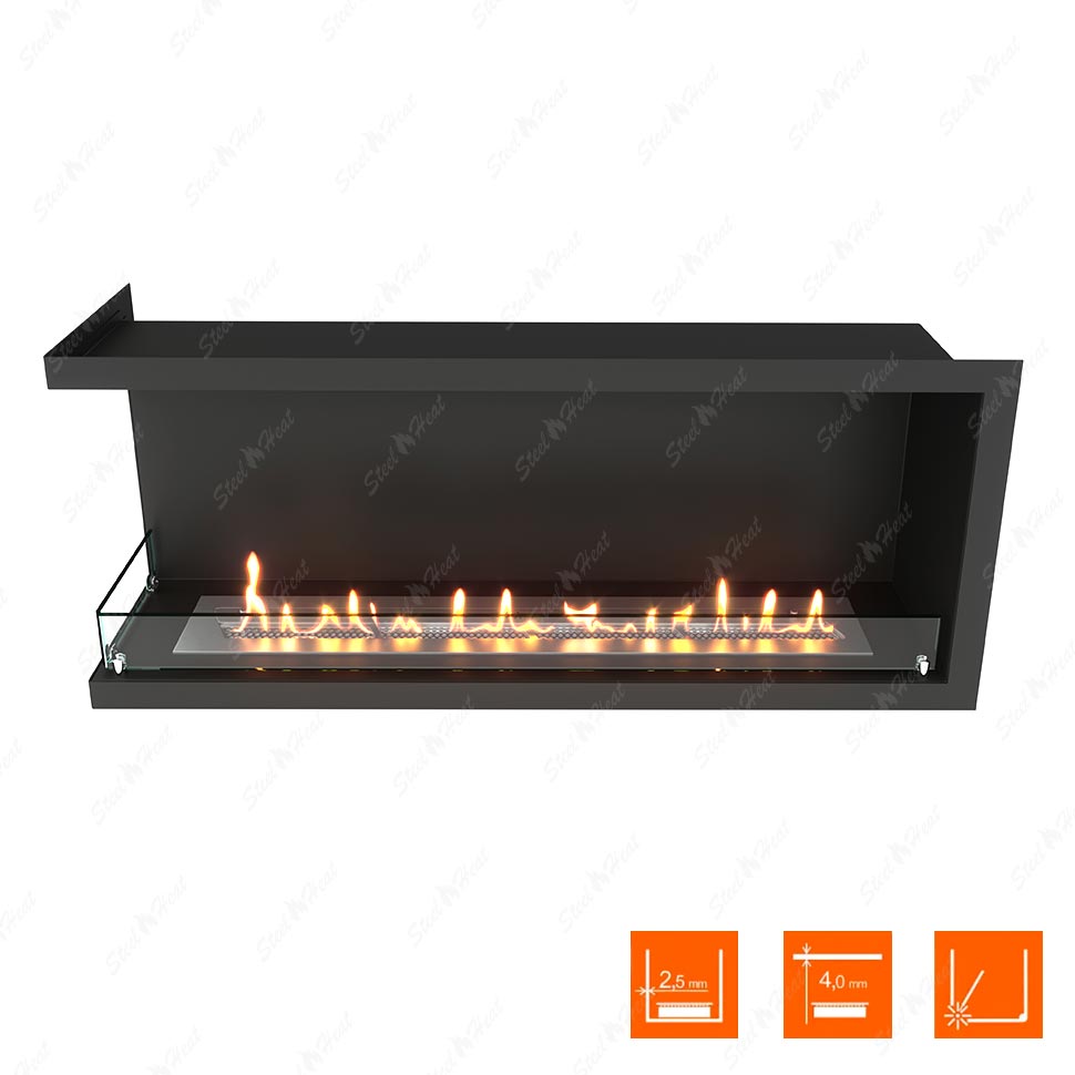 Встраиваемый Биокамин угловой SteelHeat Leader 1100 левый предназначен для встраивания в глухие ниши из гипсокартона, кирпича, пеноблоков, бетона.